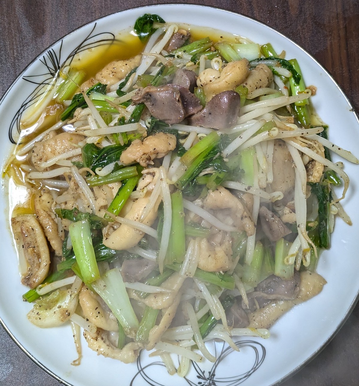 男料理(夕食)薩摩錦鶏の皮と薩摩錦鶏の砂肝と蕪のは炒め