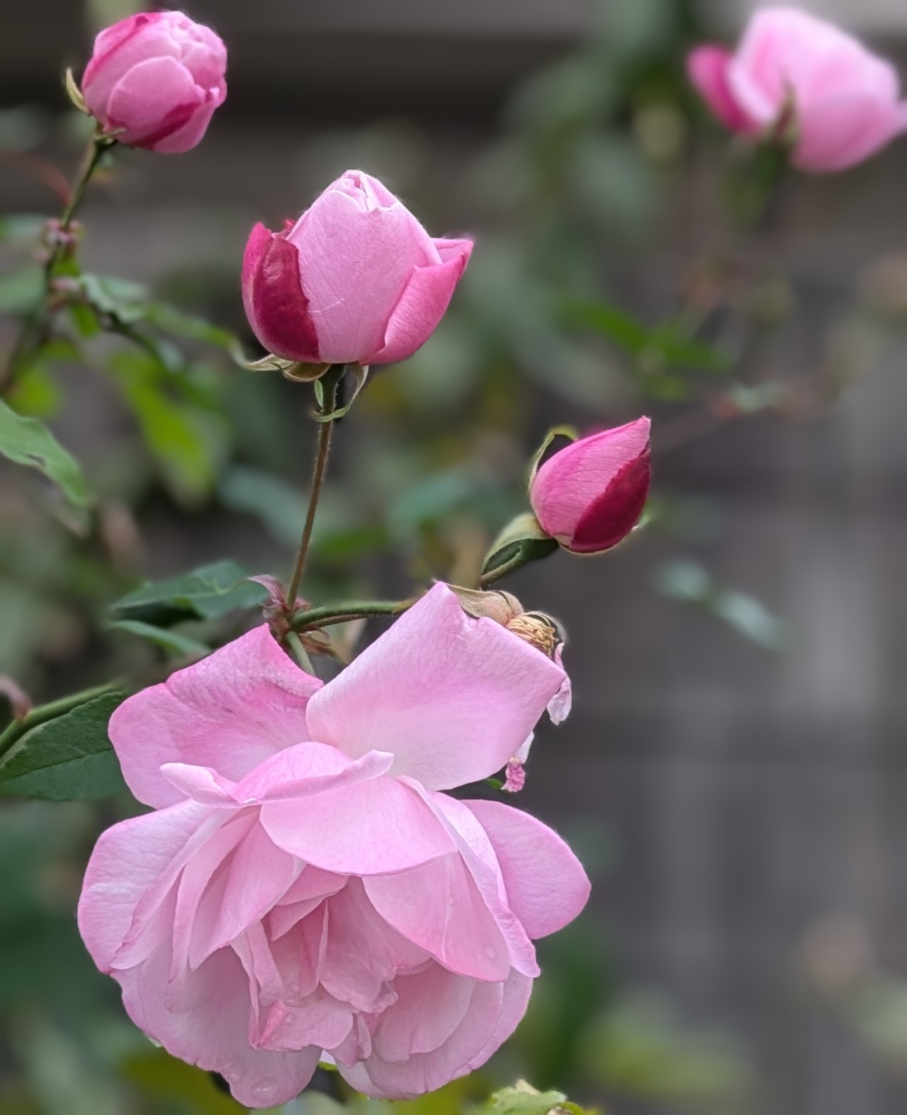 近所の花好きな方の庭にピンク色の薔薇がたくさん咲いて綺麗でした