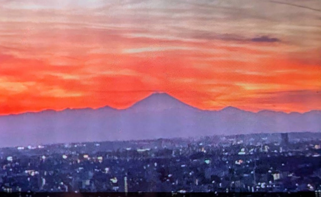 友人Sさんが鮮やかな夕焼けの富士山の写真をLINEで送ってくれました