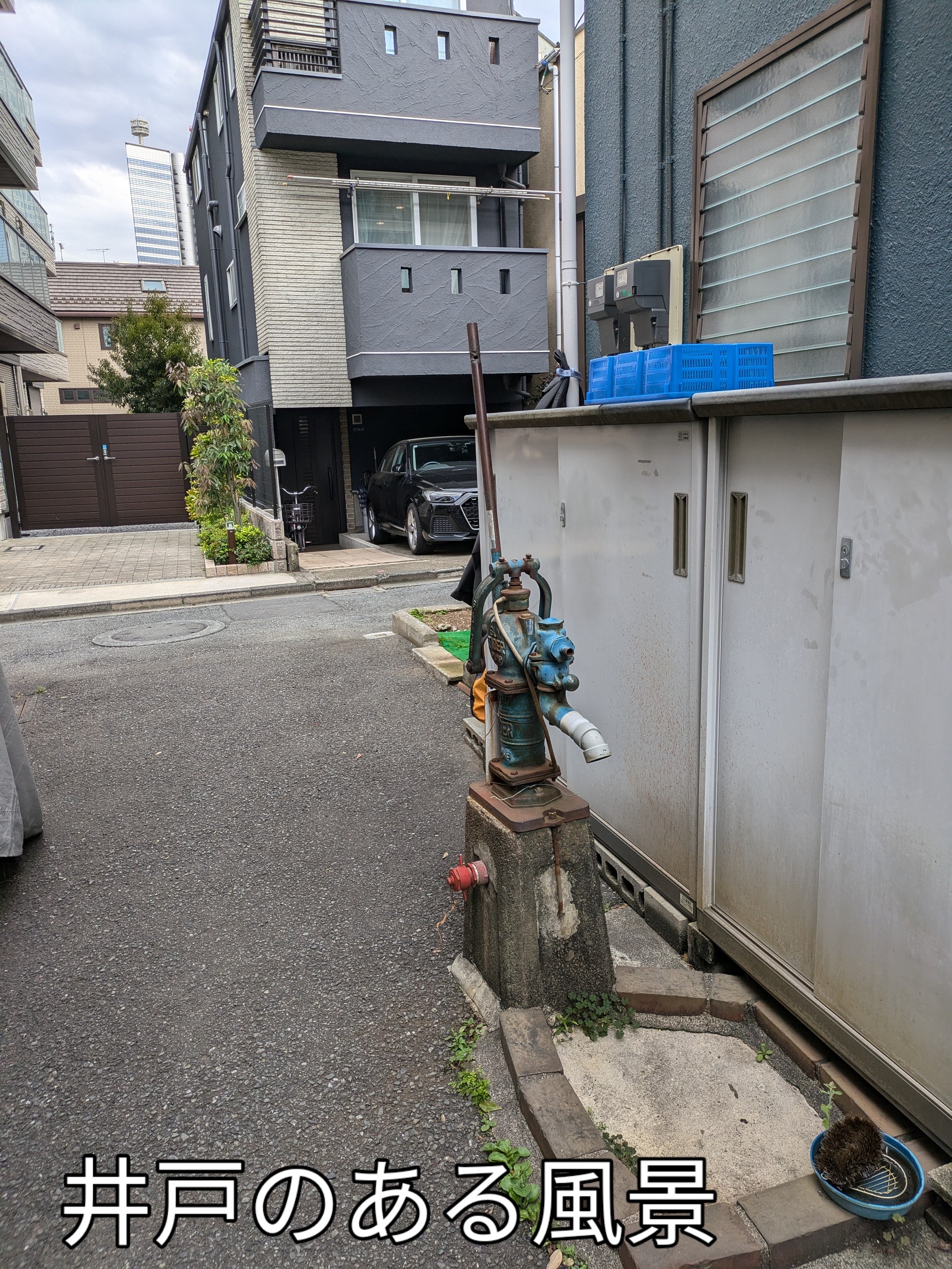 自宅近くにある下町風景にはポンプの井戸があり今も使っています