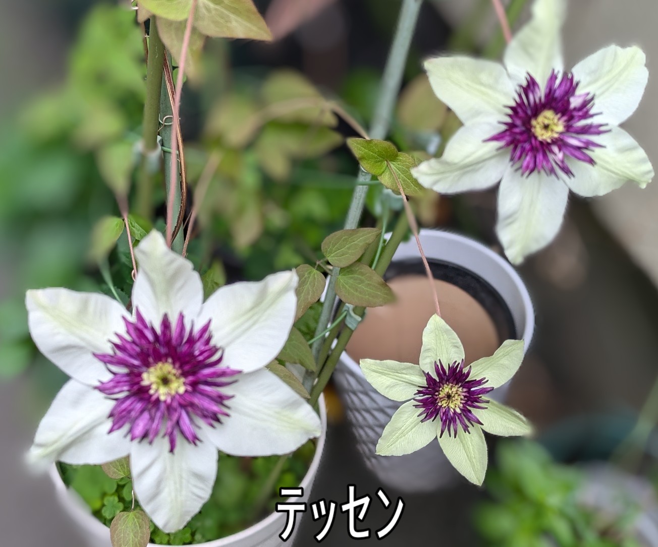 ガーデンローズの近くに白いテッセンが咲いていました