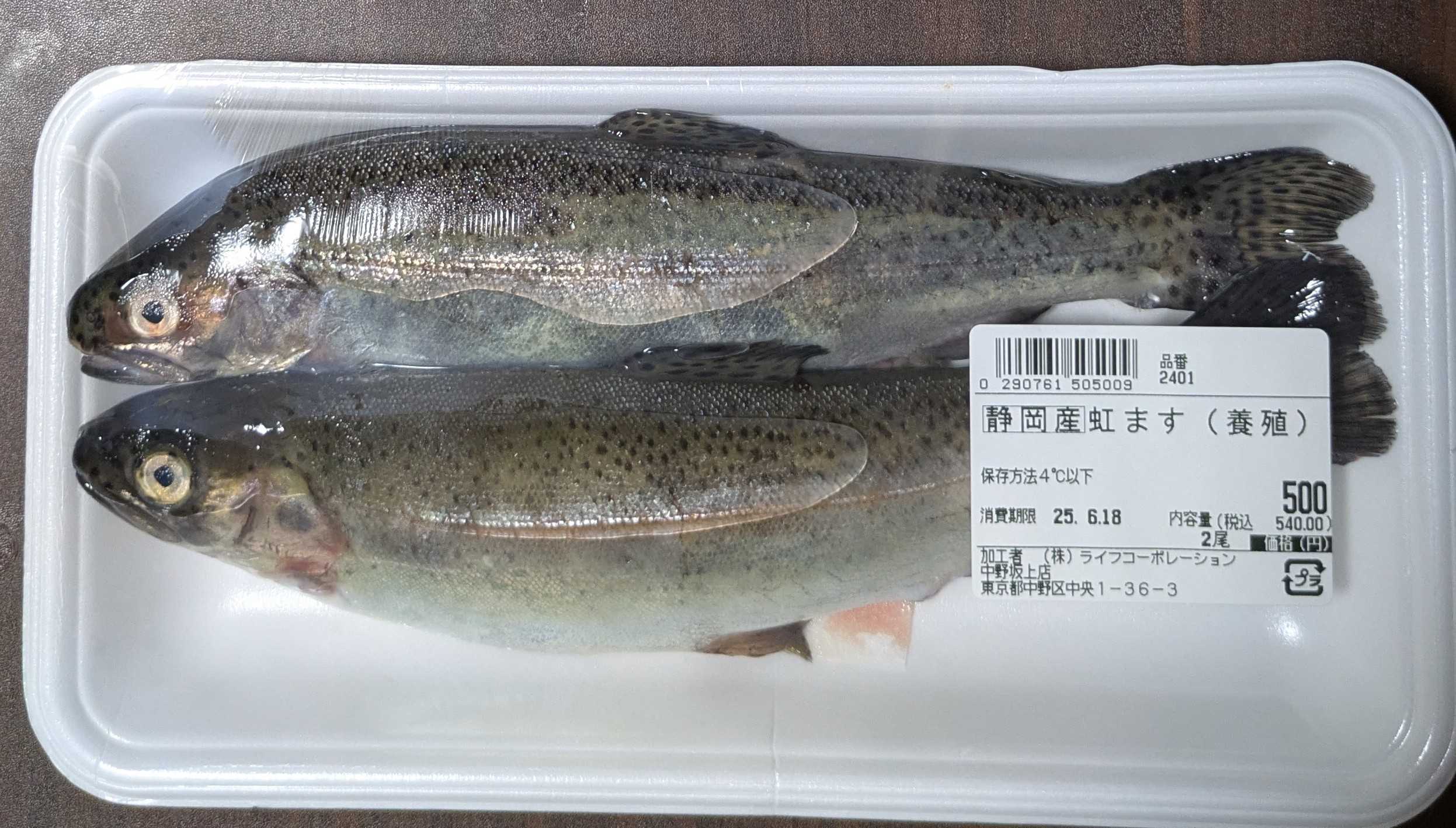 スーパーライフで 静岡産の虹鱒2匹(養殖) 500円で買いました