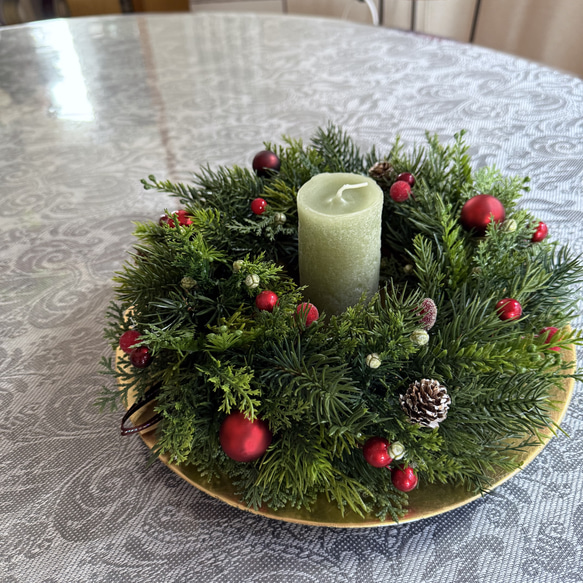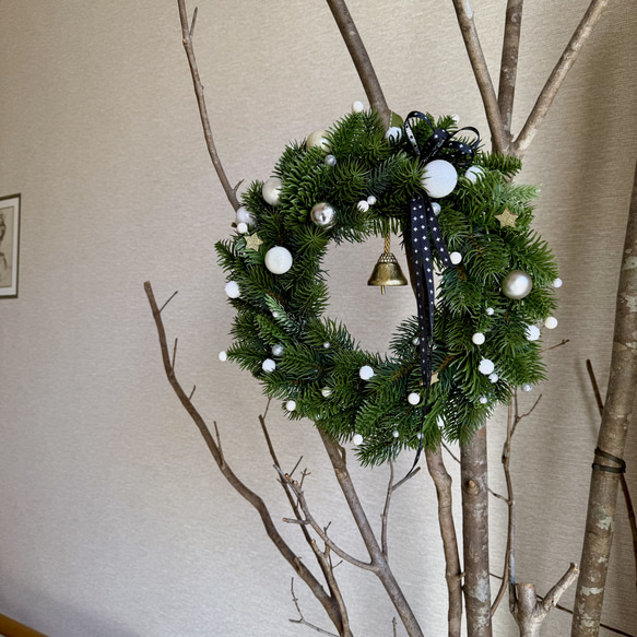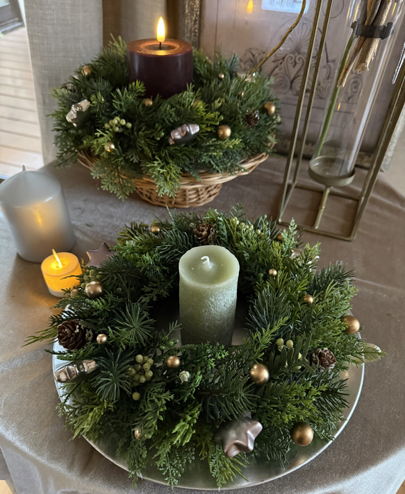 ナチュラルカラーの2way クリスマスグリーンリース.......直径28cm