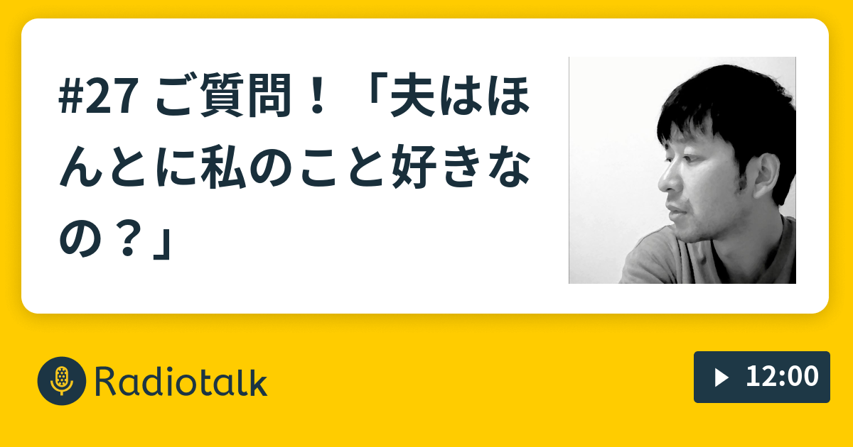 #27 ご質問!「夫はほんとに私のこと好きなの?」4月15日(木)開催@zoom愛され力がアップしちゃう!パートナーシップ相談会詳細・お申し込みはこちら↓https://ameblo.jp/0216y0721t/entry-12662141302.html?frm_id=v.jpameblo&device_id=b173c329c29b494dbcb6933e3e720a73#パートナーシップ…radiotalk.jp