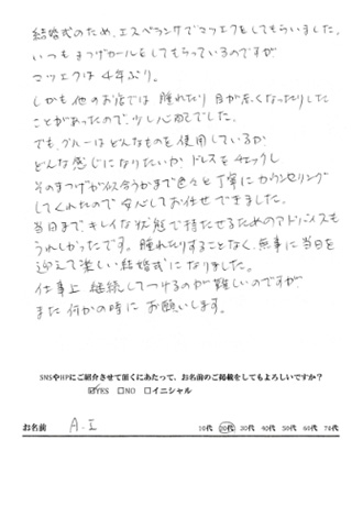 結婚式のため、エスペランサでマツエクをしてもらいました。