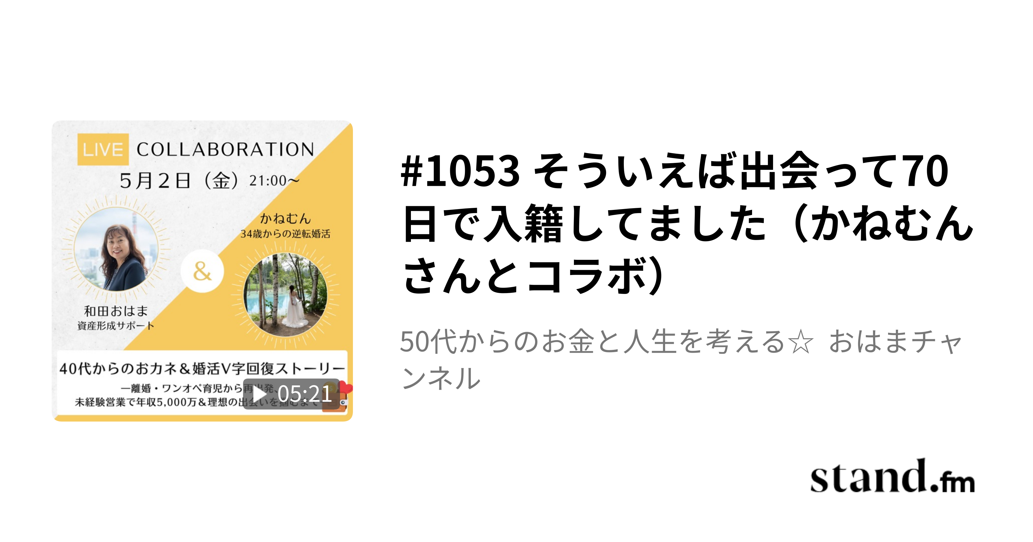37歳で素敵なパートナーと結婚されたかねむんさんと、「婚活」と「お金」についてお話ししますので、よかったらぜひリアルタイムで遊びにきてくださいね!!