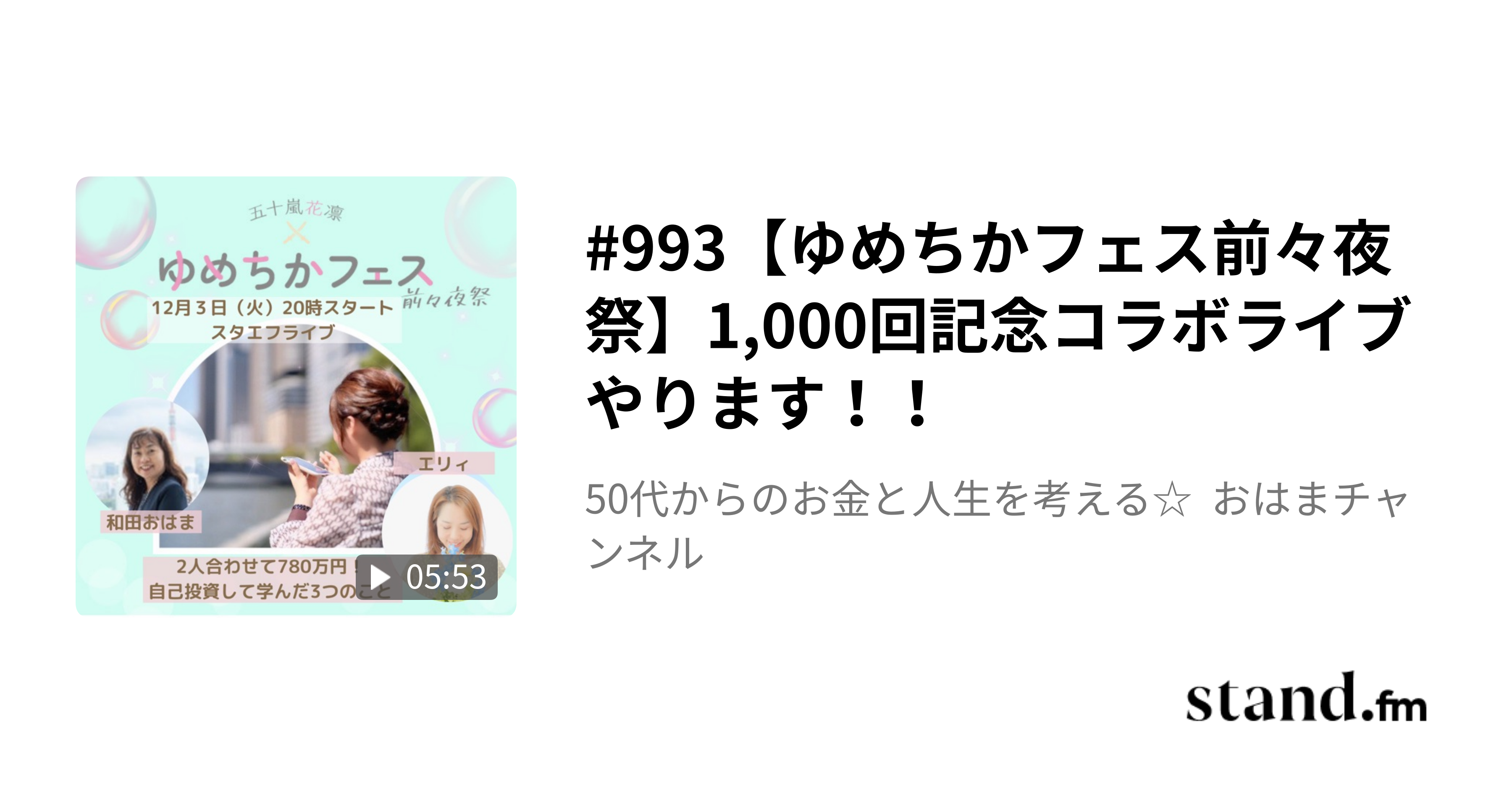 12月12日(木)10時から13時開催の花凛さんと豪華ゲストによるスタエフライブをまずは聞いてみてくださいね