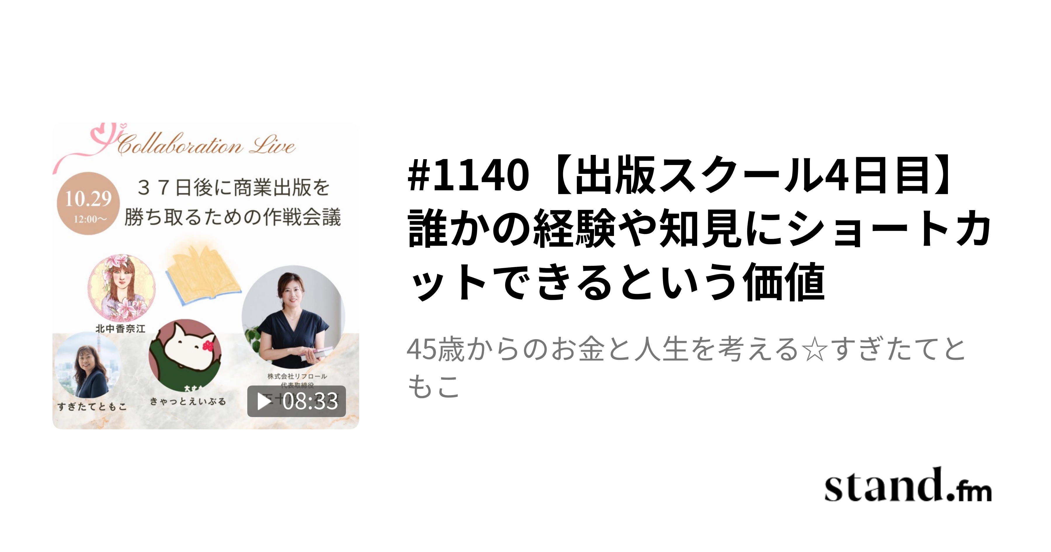向かって左側から同期のきゃっとえいぶるさん、北中香奈江(檀)さん、内田コーチ、出版スクールの先輩五十嵐花凛さん、私です
