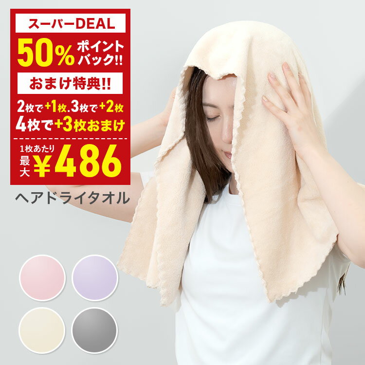 【スーパーDEAL50%ポイントバック】 1枚あたり最大486円★最大3枚おまけ ヘアドライタオル タオル マイクロファイバー 超高吸水 ヘアタオル ヘアータオル お風呂上がり 超高吸水 髪 速乾 よく乾く ヘアードライタオル ドライヤー短縮タオル ドライヤー 時短 防災楽天市場${EVENT_LABEL_01_TEXT}
