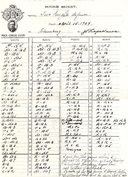 互いの対局者が行った手を順番に記入した記録を残しています。
