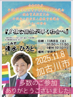 【兵庫県(姫路市)中学校 多様な性・性の健康・人権教育講演会 LGBTQ 】