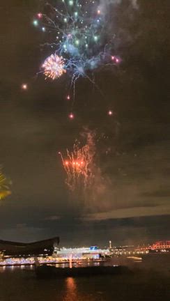 来ちゃえば楽しいんだよね〜❣️❣️神戸の夜。花火も船もキラッキラ❤️
