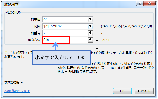 一致したところだけ出したいときは、falseで。それ以外は#N/Aだったかな