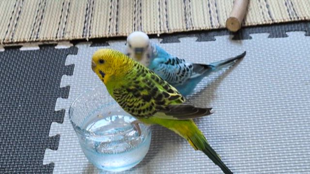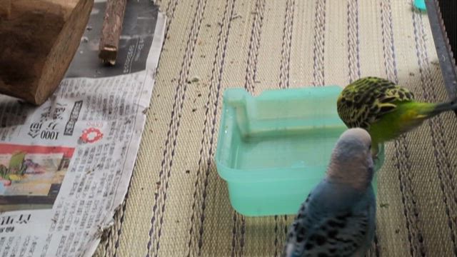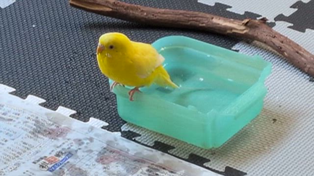 ピーちゃん、水浴びを楽しむ