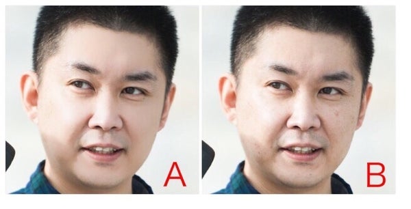 左(A)が美肌加工後です。