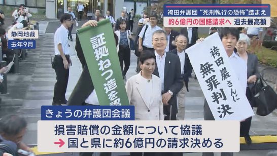 袴田巌さん弁護団が6億円の損害賠償請求へ 「検察や静岡県警が違法捜査で犯人に仕立て上げた」(静岡朝日テレビ) - Yahoo!ニュース再審で無罪が確定した袴田巌さんの弁護団は検察や静岡県警が違法捜査で袴田さんを犯人に仕立て上げたとして、国や静岡県におよそ6億円の損害賠償を求める方針を固めました。 18日袴田さんの弁護団が開いたnews.yahoo.co.jp