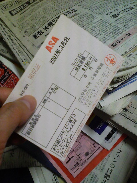 訪問販売に引っかかりました本日、やっと契約期間が終了しました。毎日届くイマイチな紙の山にギブアップして、途中解約を申し出たのですが、全く応じてくれませんでした。法律はギリギリ守ってるみたいだけど、お客をバカにしてるね。「朝日新聞です」と言って訪ねてくる歩合制の拡張員には要注意!