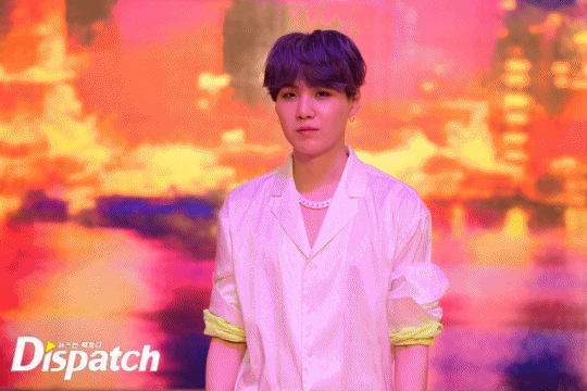 슈가는 이날 텐션이 높았습니다. 멤버들과 시종일관 장난을 쳤는데요. 움짤 주문에도 막힘없었습니다. N년에 1번 나올까 말까 하다는 역대급 애교짤입니다.