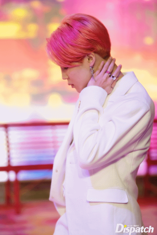 이번엔 도입부 장인 차례입니다. 지민은 '작은 것들의 시' MV에서 성숙해진 비주얼을 과시했는데요. 촬영장에서는 반전미가 돋보였습니다. 순둥에서 치명으로 180도 달라졌죠.