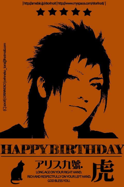 Today is アリス九號. 虎 (TORA of alice nine.) birthday