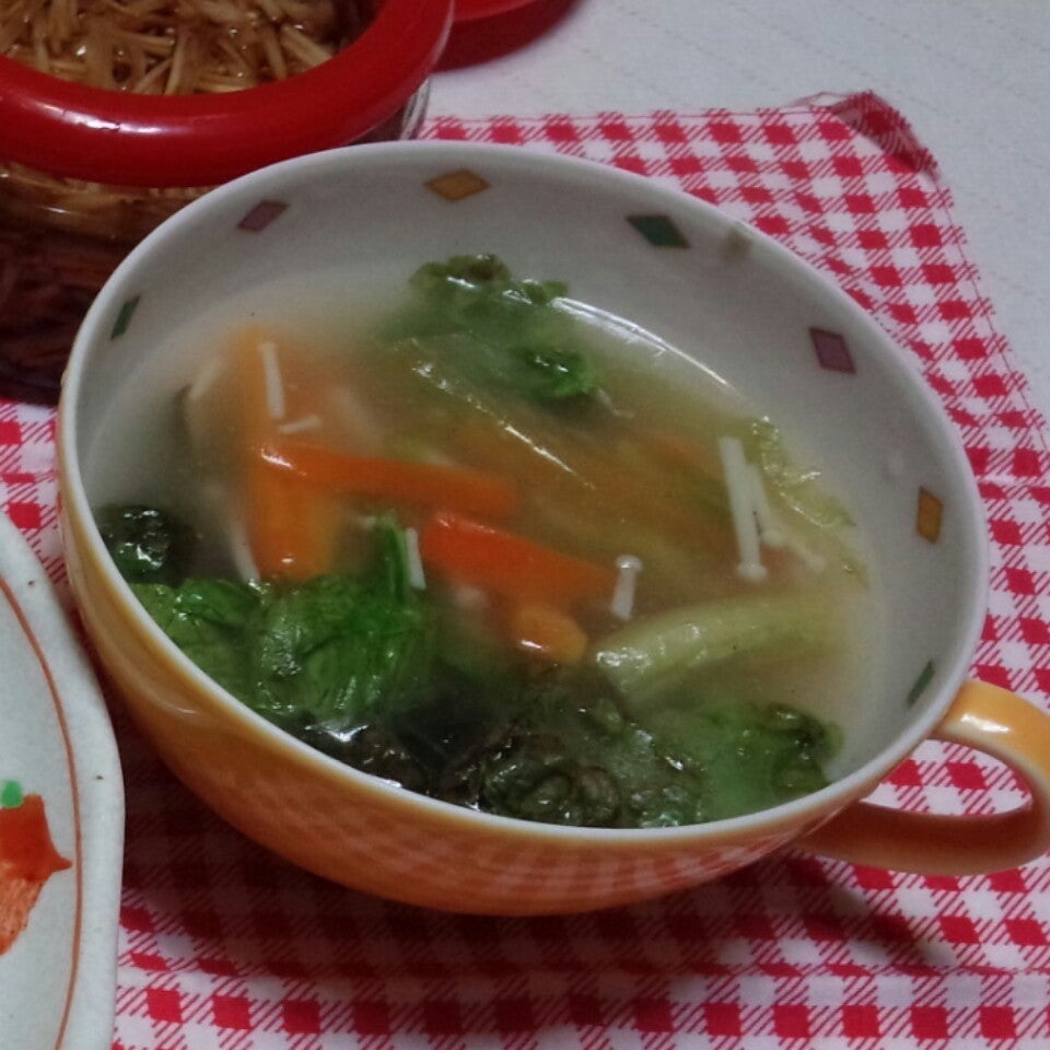 ※具は、今回はえのき茸50g、人参少々、サニーレタス数枚。