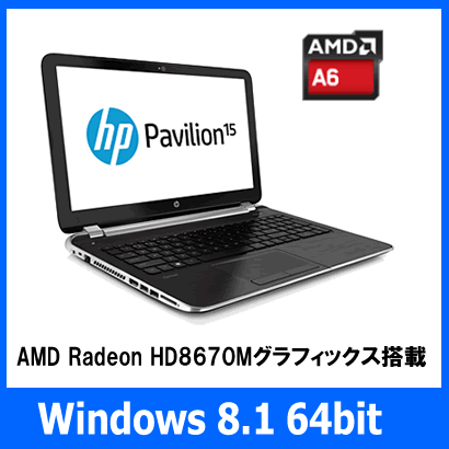 主な仕様: OS Windows 8.1 (64bit) CPU AMD A6-5200 APU (2.0GHz, 2MB L2キャッシュ) メモリ 4GB (4GB×1) /最大12GB グラフィック AMD Radeon HD 8670M グラフィックス ストレージ 1TB ハードドライブ (SATA, 5400回転) 光学ドライブ DVDスーパーマルチドライブ ディスプレイ 15.6インチワイドHDブライトビュー・ディスプレイ (1366×768/最大1677万色) 無線LAN EEE802.11b/g/n、オン/オフボタン付き Bluetooth Bluetooth V4.0 インターフェイス HDMI 出力端子×1、USB3.0×2、USB2.0×1、ネットワークポート(RJ45)×1、ヘッドフォン出力/マイク入力コンボポート×1 サイズ (幅x奥行きx高さ) 約 385×260×23-25(最厚部) mm 質量 約2.3kg Office 非搭載 主な添付品 速効!HPパソコンナビ特別版、スマートACアダプター、ウォールマウントプラグ、電源コード、保証書 等 関連キーワード : 15-g000 Win8 Win8.1 A4サイズ 15.6型 ノートPC F7Q56PA-AAAA F7Q56PAAAAA F7Q55PA 15-n200 パビリオン 安い 軽量 F7Q55PA-AAAH オンラインゲーム PROBOOK 15E-100 amd a4-5000搭載 スタンダードモデル a6-5200搭載 パフォーマンスモデル 4コア クアッドコア ■商品説明の記載について・・各ページに記載されている商品説明はメーカーHPよりポイント部分を抜粋し記載させていただいております。詳しくは必ずメーカーのHPで再度ご確認いただきご購入下さい。 ※当店の説明不足等の理由での返品はお断り申し上げます。 ★★★おすすめポイント★★★ ●クアッドコアプロセッサー搭載 クアッドコアのAMD A6-5200プロセッサー搭載で、ネットを見ながら編集作業をするような場合でも軽快に操作できます。 ●AMD Radeon HD8670Mグラフィックス搭載 AMD Radeon HD8670Mグラフィックスで、ゲームや動画の編集も快適です。 ●テンキー付キーボード搭載 キーボードにテンキーが付いているので数字入力が快適、テンキーを外付けする必要がありません。 ●DVDスーパーマルチドライブ搭載 DVDスーパーマルチドライブを搭載していますので、DVDソフトやCDの再生だけでなく、DVDやCDへの書き込みもできます。 ●大画面15.6型ワイド液晶 15.6型ワイドの大きな画面で、インターネットやメールも快適。 ●USB3.0ポート搭載USB2.0の約10倍の転送速度のUSB3.0ポートを搭載!写真等の大容量データの転送もらくらくです。
