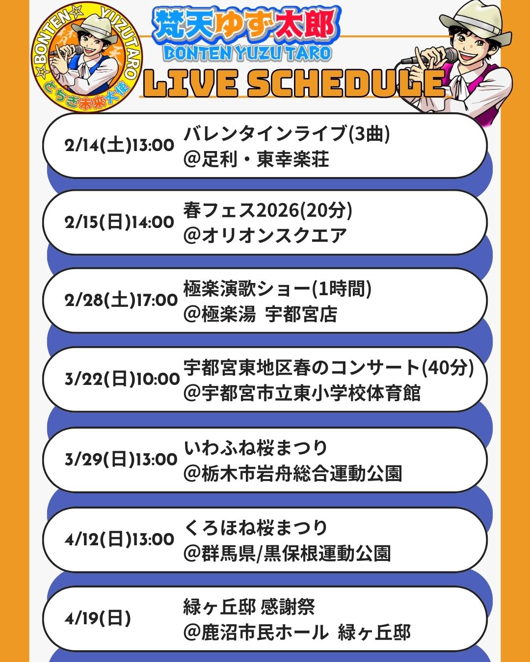 お出かけ日和の2/14(土)バレンタイン!2/15(日)春フェスにぜひ!!梵天ゆず太郎の唄を聴きに来てくださると嬉しいです⸜🙌🏻⸝