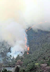 雑木林の山燃ゆ!