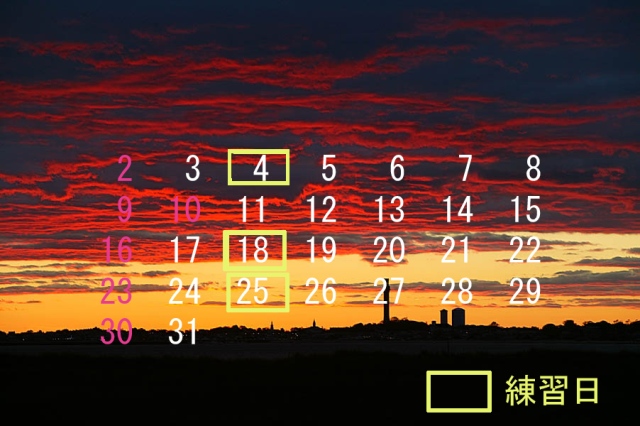 10月の練習日は3回です。11日が抜けます。
