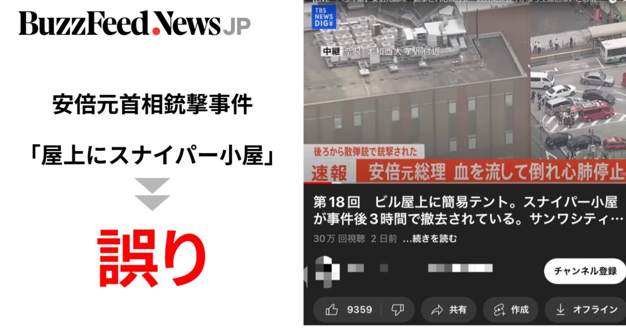 安倍元首相銃撃事件「ビル屋上にスナイパー小屋」→誤り。動画やツイートが拡散、当事者が法的措置を検討