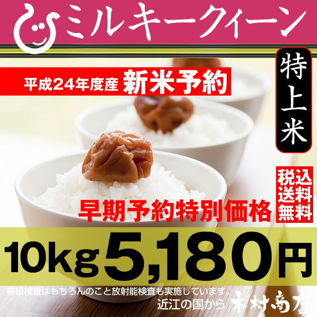 - 【新米:早期予約】 ミルキークィーン 特上米 10kg【平成24年:滋賀県産】