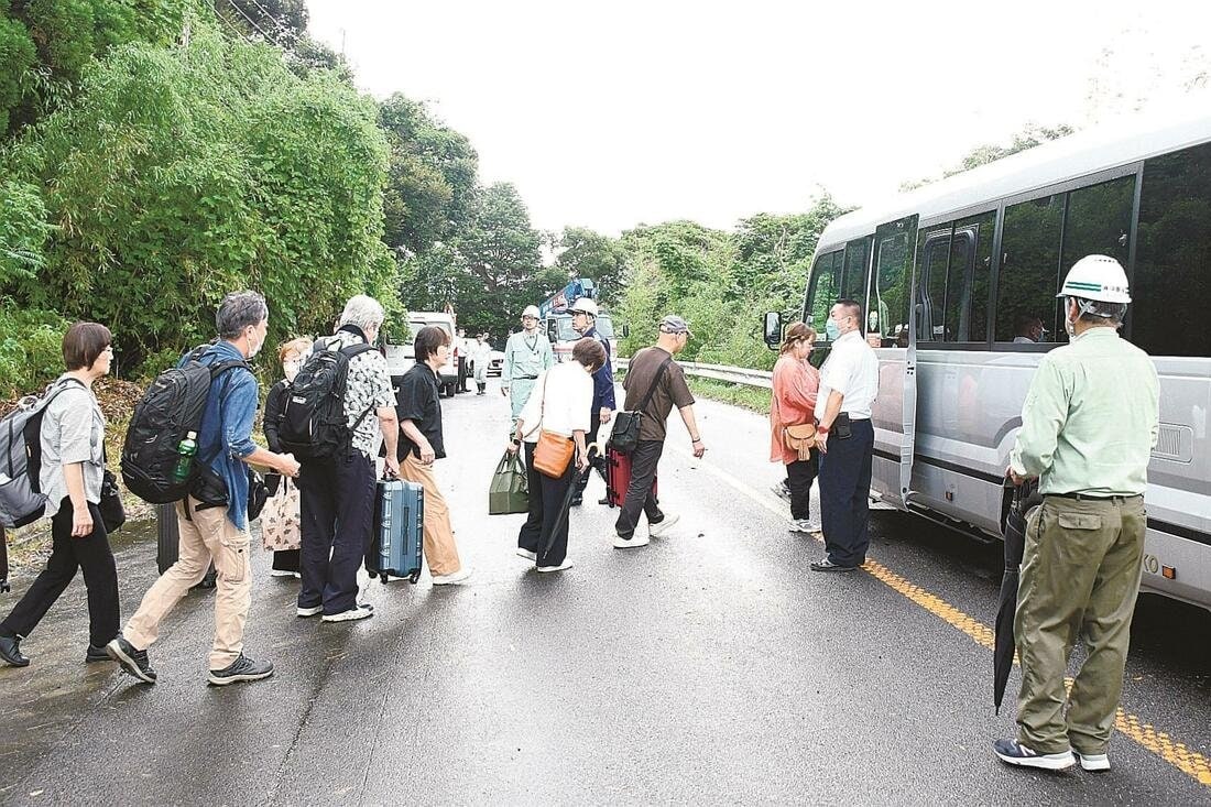 街と宿を結ぶ1本道の国道が大雨によって