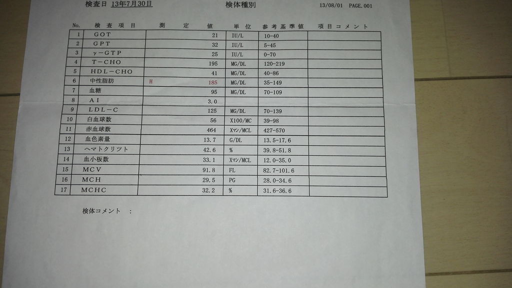 やはり TG値 (トリグリセライド) が高い、、医師からも中性脂肪高値 要経過観察とのご指摘、、