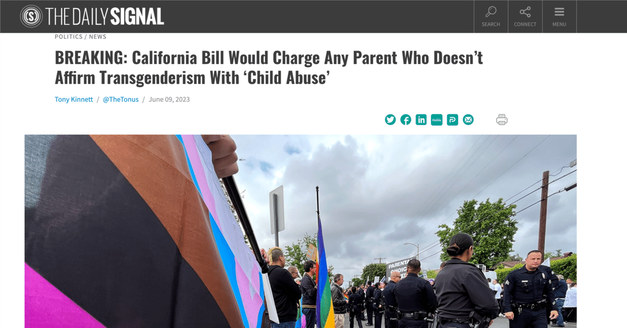 【海外記事】速報:カリフォルニア州、トランスジェンダーを肯定しない親を「児童虐待」で起訴する法案
