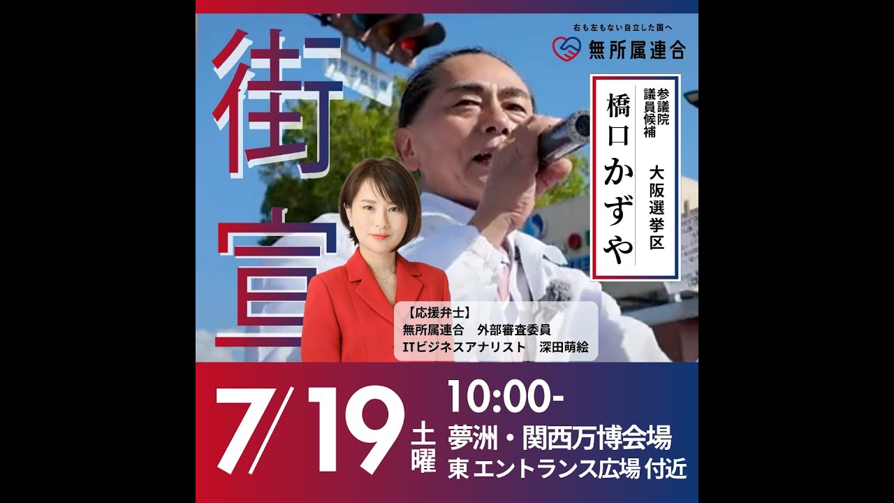 7月18日、無所属連合・橋口かずや候補者が大和西大寺駅で奈良市議会議員候補のみのうらみき氏の応援街宣活動をしました。