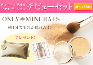 | オンリーミネラルは、高品質ミネラル4種類のみを使用したミネラル100%のオールインワンファンデ。 肌に刺激となる成分をとことん排除しているので、毛穴をふさぐこともなく一日中快適なつけ心地!油分を含まないから、クレンジングも不要! 今なら、そんなオンリーミネラルをおトクに試せるセットが、ファンデーションと専用ブラシがセットで1,980円! この機会に是非、お試し下さい!! |