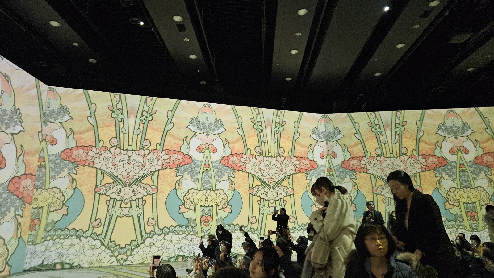 「永遠のミュシャ」の広告を見た瞬間、20メートルにも及ぶ巨大ホールの四方をスクリーンで囲み、100年前のミュシャを映し出す――そんな光景を想像し、迷わずチケットを購入した。(しかも今週末で終了するというタイミングだった。)