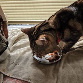 いつものニャンズの食事のひとこま動画。