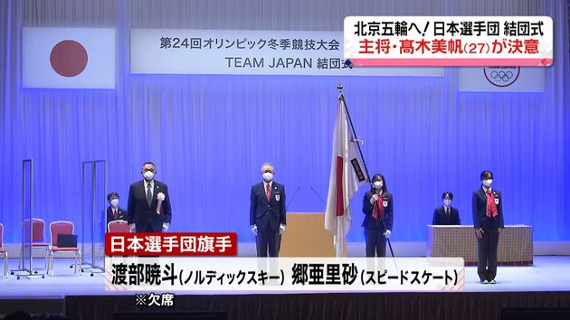 北京五輪 日本代表選手団 結団式で決意262人の日本選手団が参加を予定する北京オリンピック。秋篠宮ご夫妻も出席された結団式では選手団の旗手を務めるスピードスケート郷亜里砂選手に団旗が手渡されました。news.ntv.co.jp