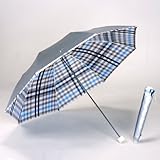 - UVカット 晴雨兼用 遮光 日傘/折傘 シルバー/先染チェック [ブルーB]<ひんやり傘>/リーベン