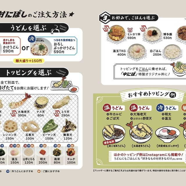 【ぶっかけうどんとトッピングの温玉、明太子】