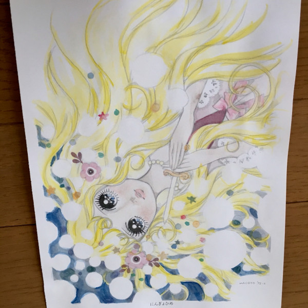 色鉛筆入れたのは、「輪郭のグレーの線」と「頬の赤み」のみ!!!水彩はちょっと濃淡はっきりつけてます。