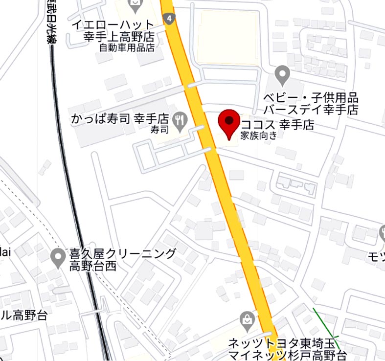 国道4号沿いを、「幸手」方向に徒歩約10分。