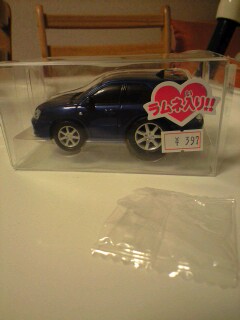 ラムネこの間ばーばが来た時、西松屋でねだったオモチャ。車なんて興味無いはずなのに、なぜ?家に着くなりオマケのラムネ菓子を取り出し一つ食べて「すっぱい!」(怒)「くぅちゃん、はい、どーぞ」って…ラムネ目的。