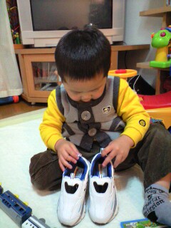 お年玉で、前から欲しかったプラレールの靴を買いました。