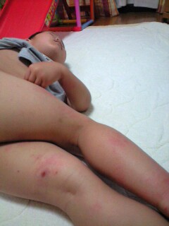 「虫さされのかきむしったのと汗疹です。」