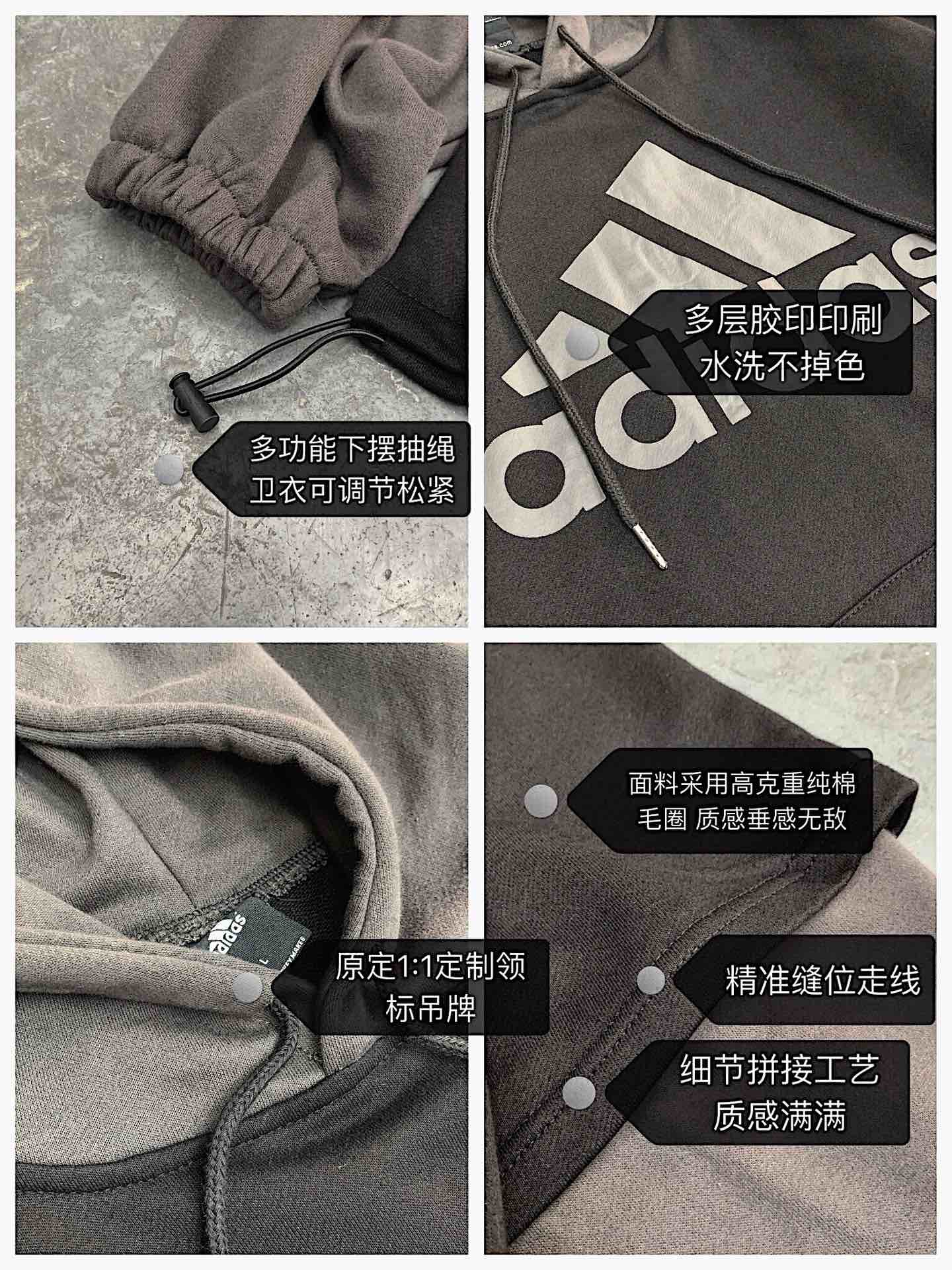 ADIDAS 2019限定【黑陨石】拼接假两件连帽卫衣 纪念于今 新一期新款限定上市 当下超热配色相撞 完美融合多种元素 经典耐看 工艺更是细节满满 下摆抽绳可调节松紧 高克重纯棉毛圈 工艺拼接假两件 超正版型 诚意满满. SIZE:M L XL