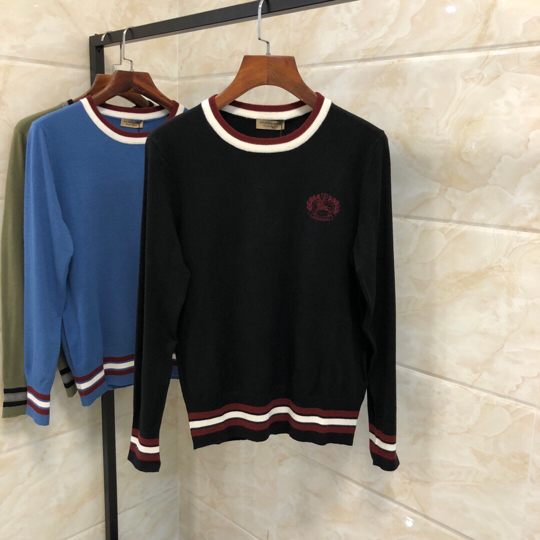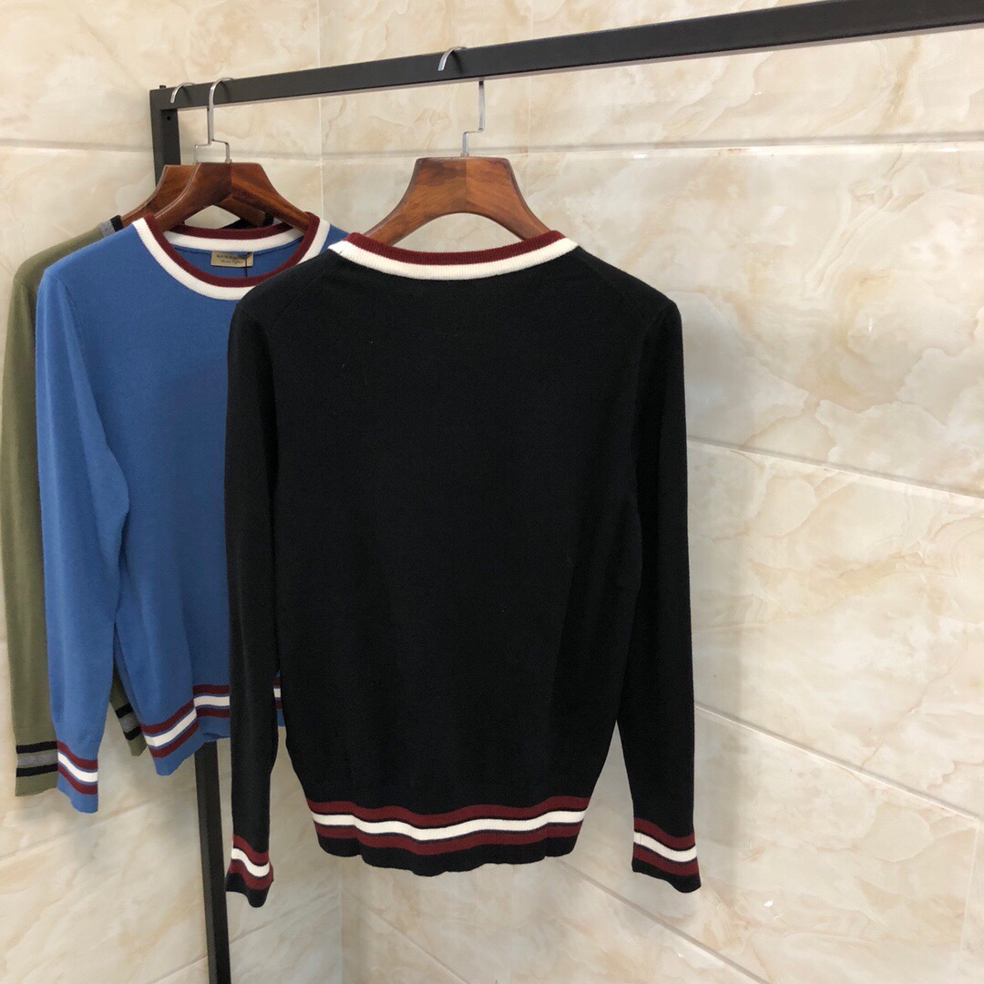 ~巴宝莉秋冬新款羊毛衫来袭! 🌹🌹巴宝莉官图最新款上市 ,欧美英伦风百搭款修身毛衫 领口拼接撞色设计 刺绣logo 设计,低调奢华大气 面料采用进口美丽奴羊绒面料, 手感柔软细腻舒适,可以贴身穿着,不扎皮肤,不易变形 不易起球,每个男士的必备单品,100%山羊绒,选择款式简洁大方 ,店主极力推荐款!颜色:军绿色 蓝色 黑色 码数M-3XL