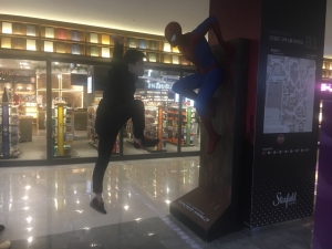 これはまずいと思い、翌朝は6時に起きてウオーキングをしたらゴーゴーマンにそっくりな大型フィギアや、私の大好きなスパイダーマンにそっくりなのがあり、そのリアルティーに思わずパシャリ(^^)。