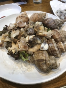 その他は、新鮮タコの踊り食いや、定番のサムギョプサル、CAの方が度々現れるという、もつ鍋みたいなのも食べたら、一日で3キロも太ってしまった。汗